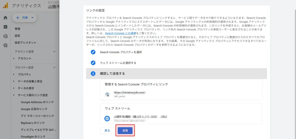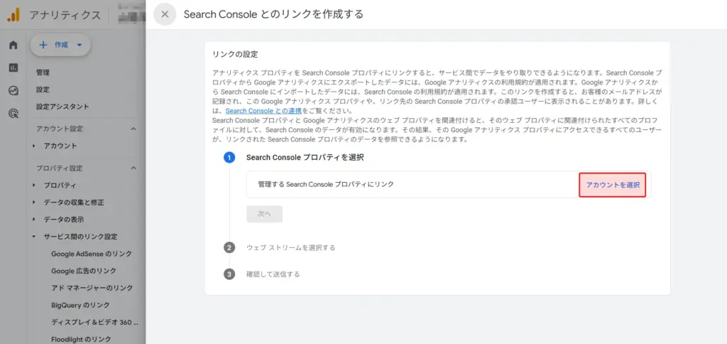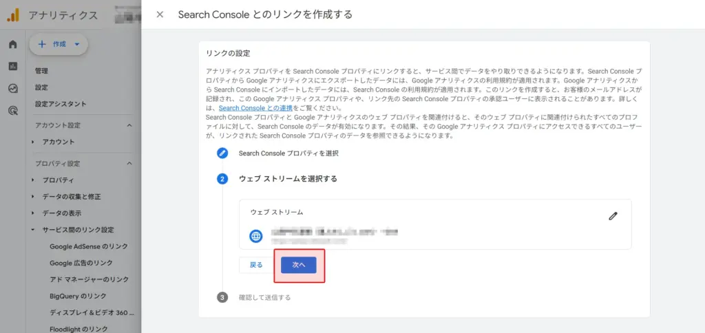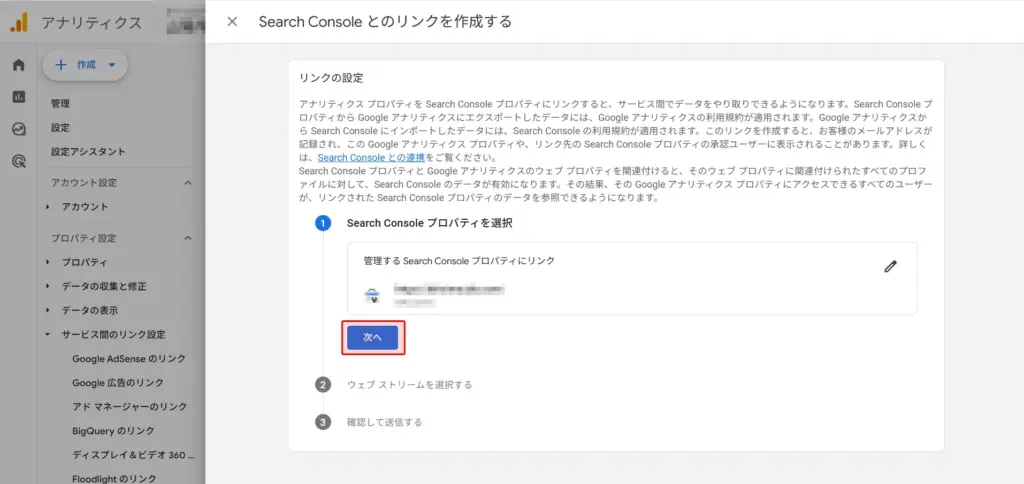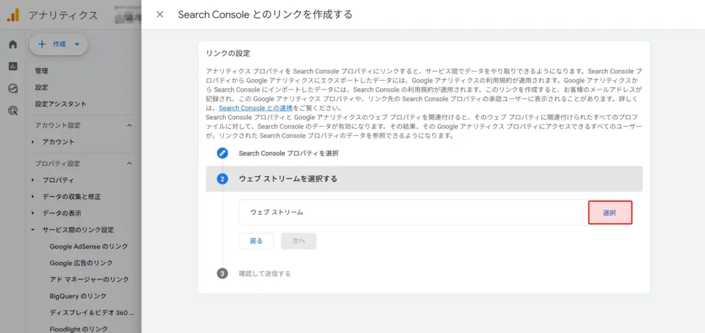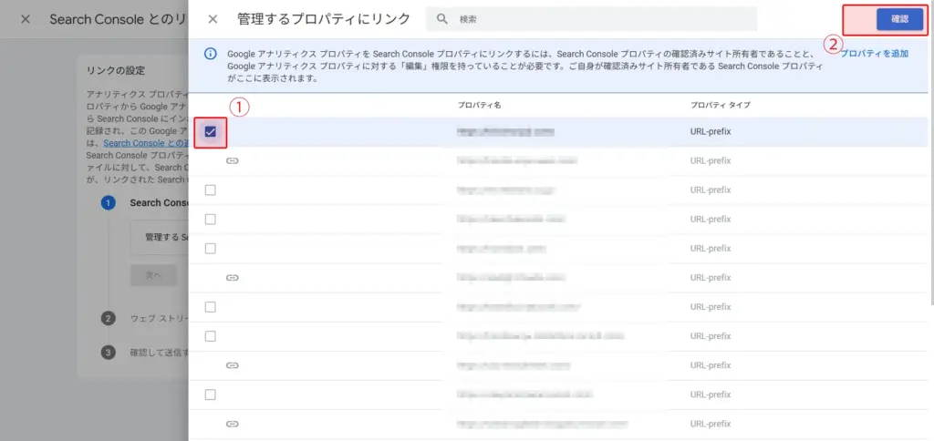 設定したいサーチコンソールのプロパティにチェックし「確認」を選択します。